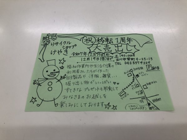 リサイクルショップけやき、移転1周年記念売り出し!